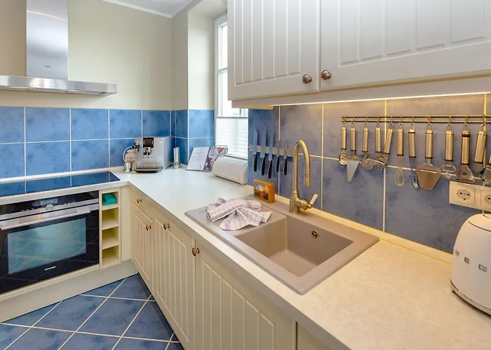 Villa "To Hus" In Sellin - Appartement 04 Mit Kamin Und Suedbalkon offers a mini-kitchen with all necessary appliances, like a toaster, a cooktop, and glassware. Transportation options in the area include Sellin Sparkasse bus station, situated merely 5 minutes' stroll away. An array of activities can be enjoyed, including mini golf.